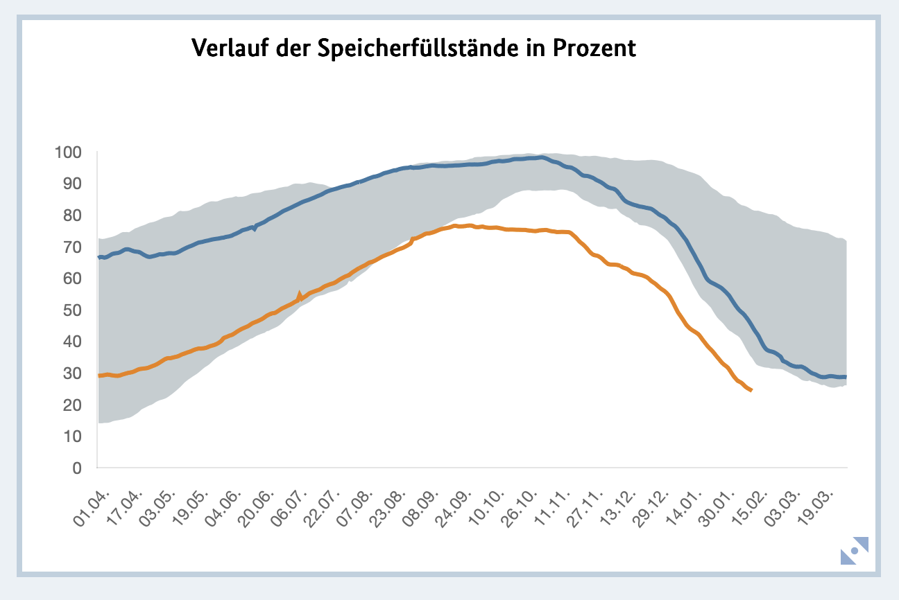 Es bietet sich auf alle Fälle an, den Füllstand der Gasspeicher im Auge zu behalten um eventuell rechtzeitig darauf reagieren zu können.